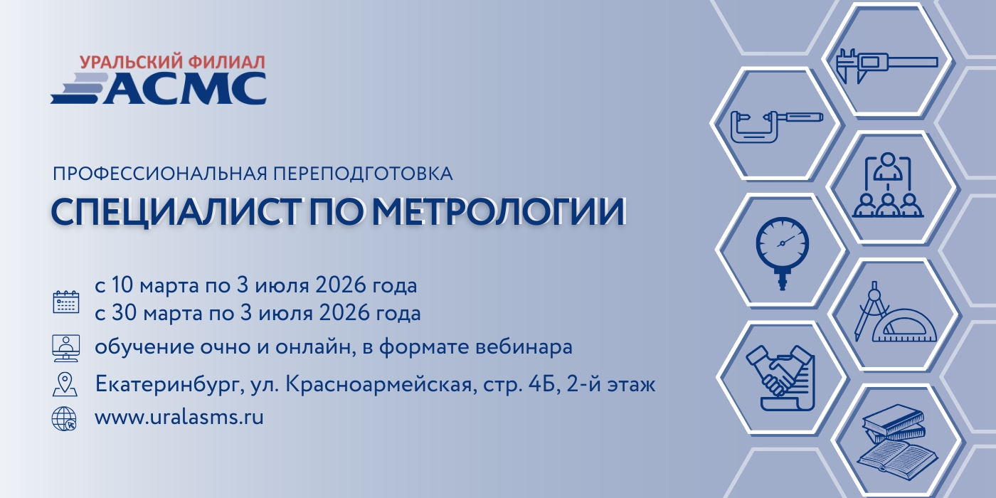 Уральский филиал АСМС проводит дополнительную профессиональную программу «Специалист по метрологии», предназначенную для переподготовки специалистов метрологических служб по направлению «Поверка и калибровка средств измерений».