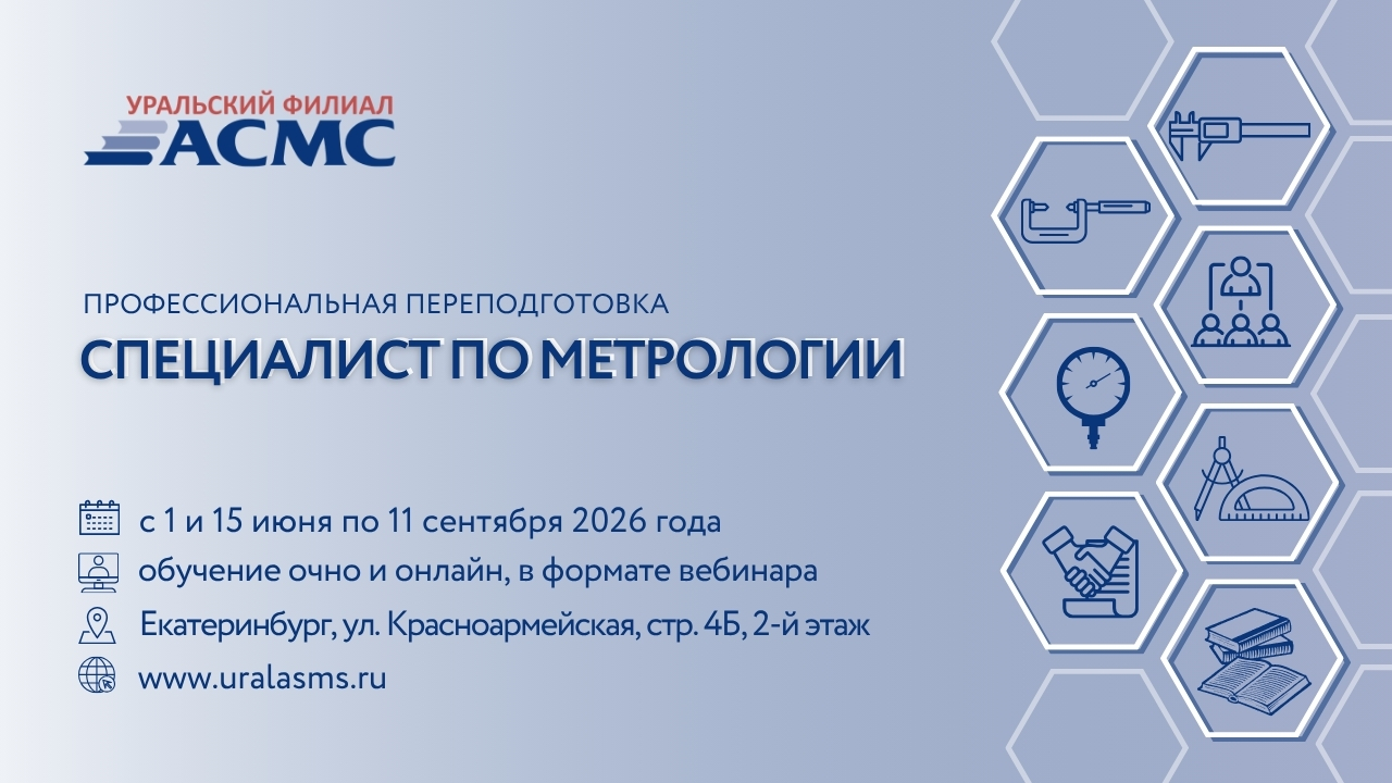 Уральский филиал АСМС проводит дополнительную профессиональную программу «Специалист по метрологии», предназначенную для переподготовки специалистов метрологических служб по направлению «Поверка и калибровка средств измерений».